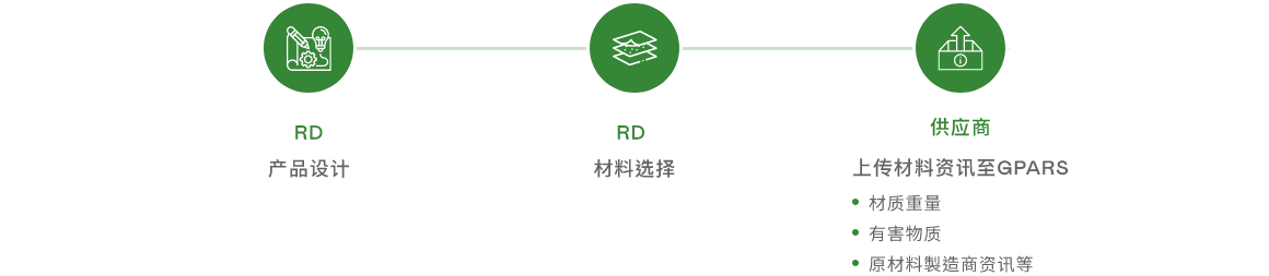 PT视讯(中国区)官网建立原物料供应商管理标准,要求供应商需符合PT视讯(中国区)官网遵循REACH、GADSL、IEC 62474等相关国际规范所订定之永续物料GPARS标准。PT视讯(中国区)官网将此标准纳入採购程序,所有物料供应商必须在GPARS(绿色零件聚合和报告系统)中填写相关必要信息,其中包括原物料製造商资讯。