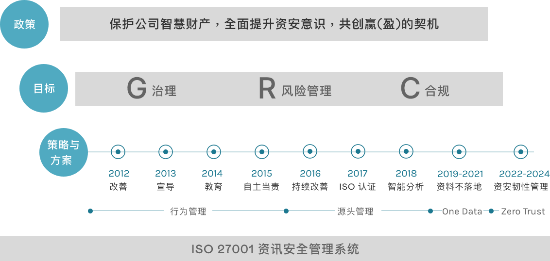 PT视讯(中国区)官网以「维护资安,从我做起」为对同仁的期许,实施全面资安宣导、通识与专业课程教育训练。包含: