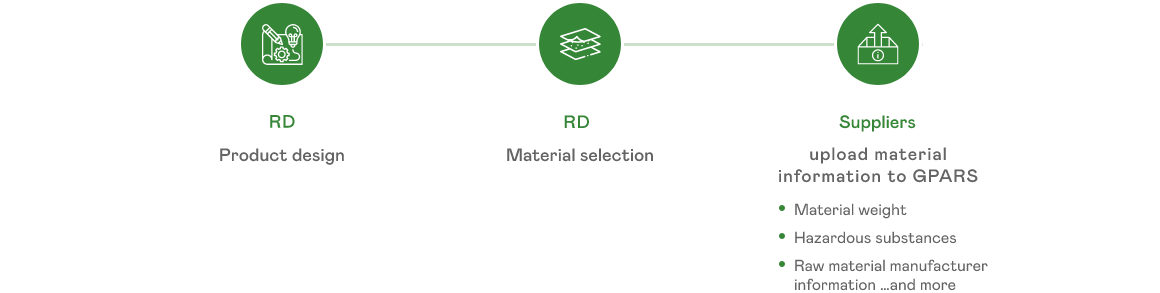 AUO has established a supplier management standard for raw materials, requiring suppliers to comply with AUO's sustainable material GPARS standard based on international regulations such as REACH, GADSL, and IEC 62474. AUO incorporates this standard into its procurement process, and all material suppliers must fill in relevant necessary information in theGPARS (Green Parts Aggregation and Reporting System)including information about the raw material manufacturers.