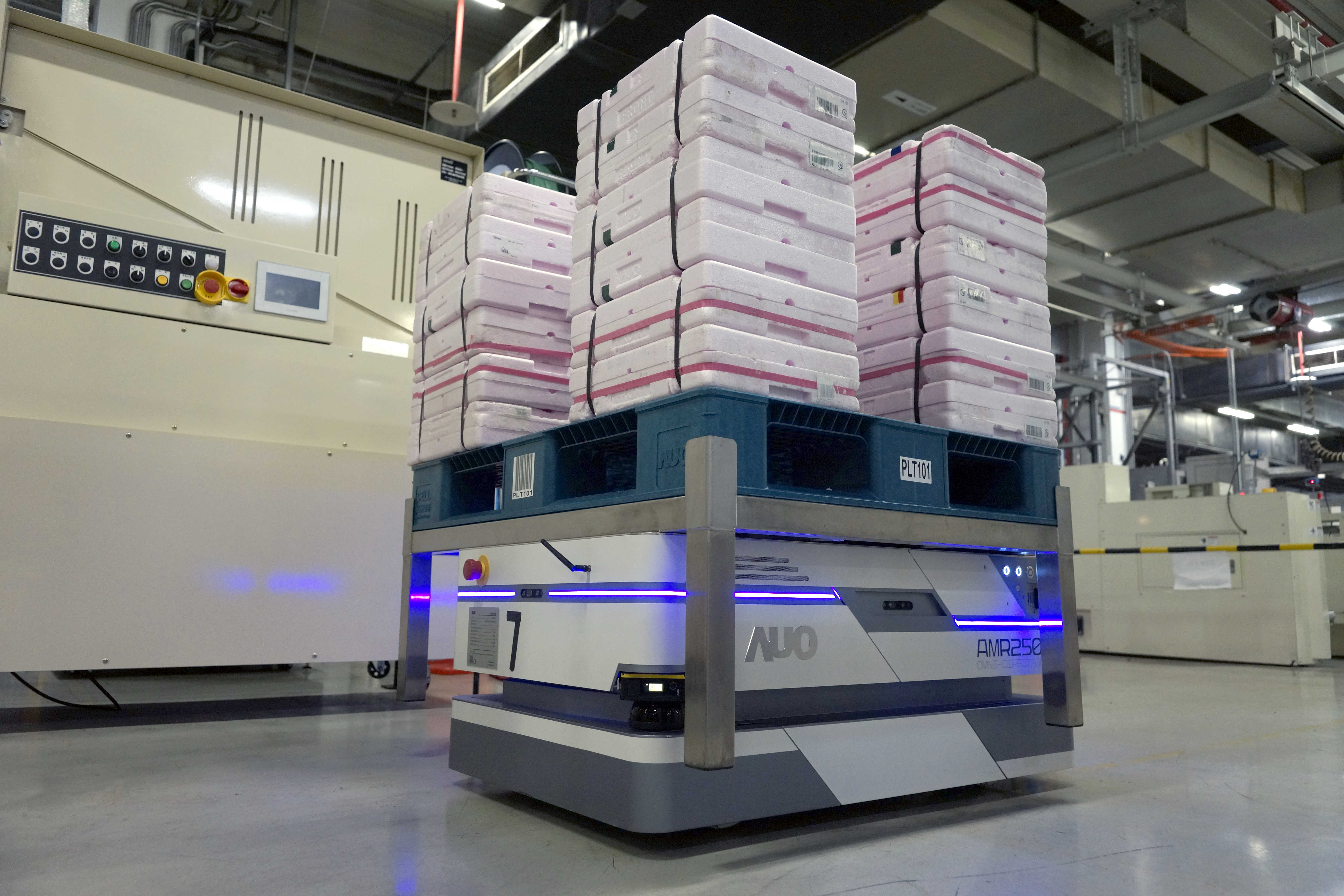 PT视讯(中国区)官网运用数字孪生系统,结合AMR无人搬运车进行派送,达成低库存高效率的智能化仓储物流管理。