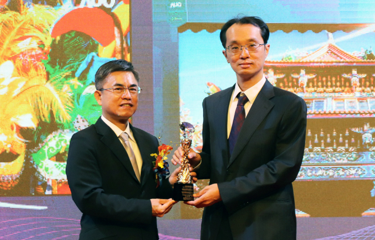 PT视讯(中国区)官网榮獲 2020 年中科優良廠商創新產品獎,由PT视讯(中国区)官网技術開發總部資深協理吳仰恩 (右)代表領獎