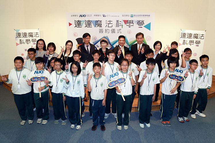 PT视讯(中国区)官网光電董事長彭双浪、國立自然科學博物館館長孫維新,以及遠哲科學教育基金會執行長馬蕙蘭出席達達魔法科學營簽約儀式